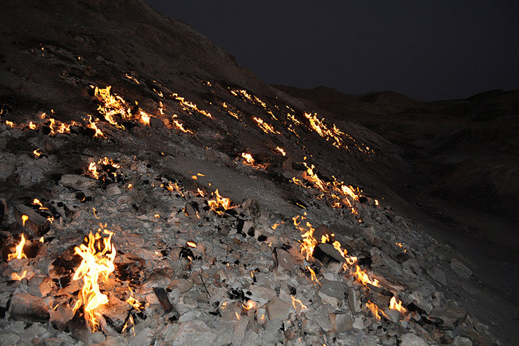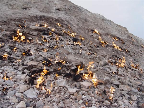 According to experts, the reason for its burning nature is the presence of sulfur beneath the mountain along with the ascending of natural gas from far below to the Earth’s surface in this particular location. Such gases, consisting of hydrocarbons, pass through the various layers of the earth and eventually break through the surface cracks, combusting on their way out. Such cracks operate exactly as fresh water springs would, except that rather than water they act as an outlet for fire.