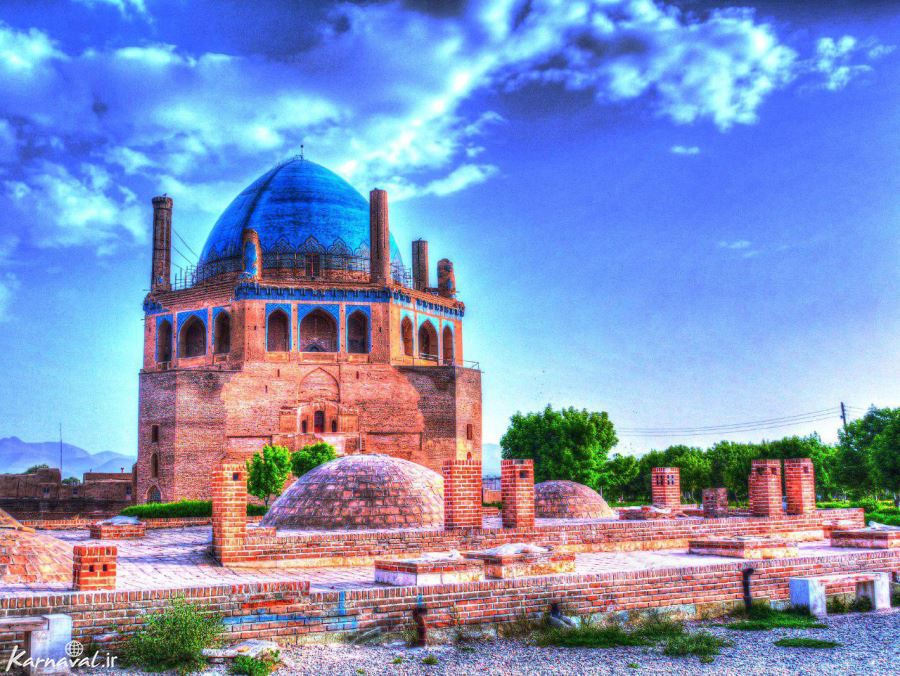 Soltanieh Dome has 8 elevated porticos and about 50 chambers, including an area which is also similar to a chamber. The dome of this construction weighs 200 tons and is situated on pillars, bearing an area of 50 sq.m. each if separated or cut across. This structure is made of a mixture of gypsum and to a lesser proportion limestone. Gonbad Soltanieh is erected in three floors which are defined as follows. The ground floor consists of the eight portions. The first floor comprises of the halls which run throughout this floor.