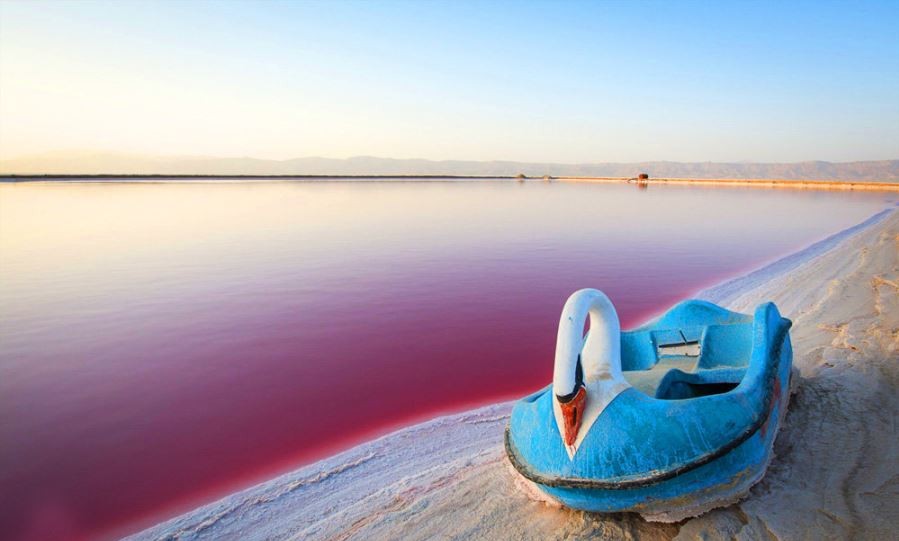Maharloo Lake also known as Daryache-ye-Namak is a seasonal salt lake in the highlands of the area of Shiraz, Iran. 27.0 km (16.8 mi) southeast of Shiraz, the lake salt is rich in potassium and other salts.Rudkhane-ye-Khoshk, a seasonal river flowing through the city of Shiraz, brings most of the flood water to the lake bed during intensive precipitation events. The lake water typically evaporates by the end of summer and exposes the white lake bed.