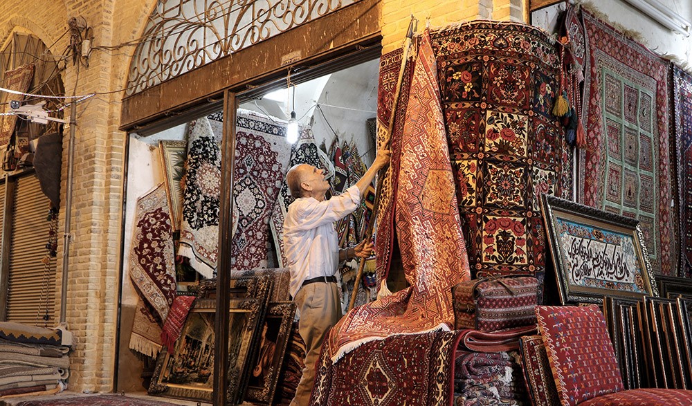 The floor of these shops are elevated about 70 centimeters from the street level, leaving a shelf in front of the shops running in all the length of the street. This shelf is about 1 meter wide. The Bazaar has beautiful courtyards, caravansarays, bath houses, and old shops which are deemed among the best places in Shiraz to buy all kinds of Persian rugs, spices, copper handicrafts and antiques. Like other Middle Eastern Bazaars there are a few numbers of mosques and Imamzadehs constructed adjacent or behind the Bazaar.