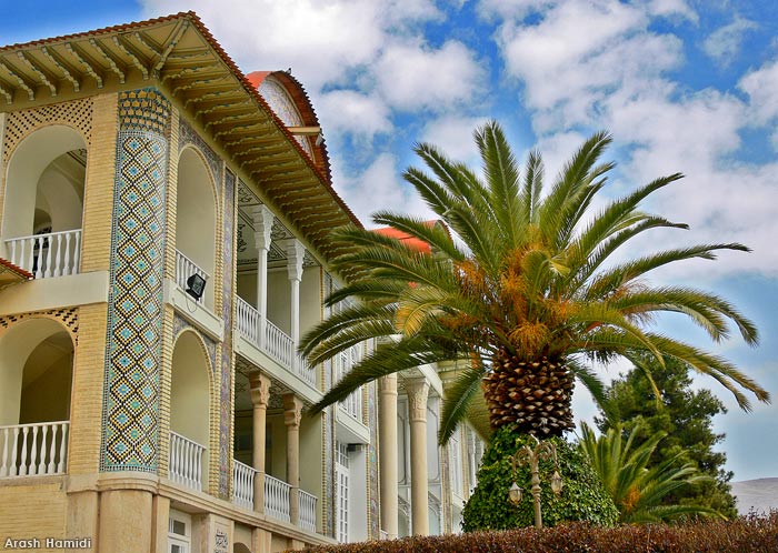 The Pahlavi dynasty heavily invested in this Garden, renovating it to an internationally recognizable status. The compound came under the protection of Pahlavi University during the Pahlavi era, and was used as the College of Law.In the front of the building a large veranda with two high standing pillars sits. The large veranda is flanked on either side by smaller terraces. Directly beneath the main veranda are two-meter high solid stone plates with inscriptions depicting poems by poets such as Sa'adi and Hafez.